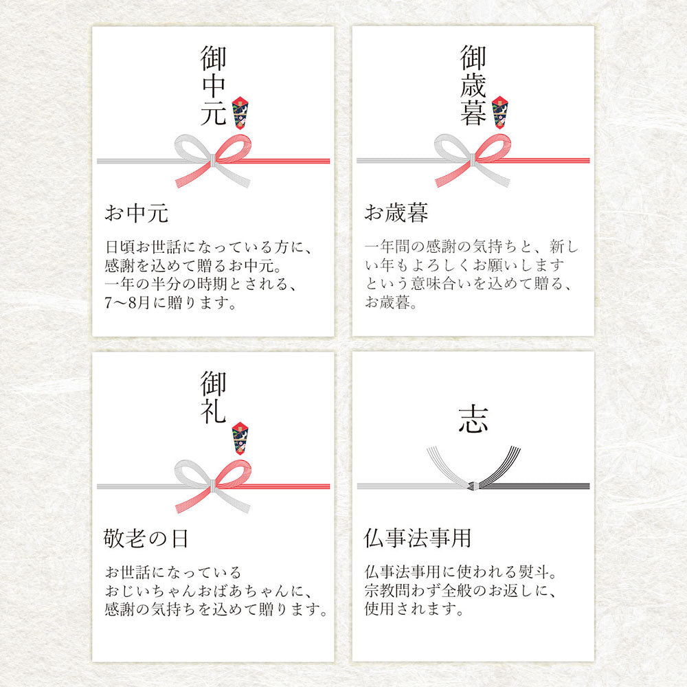 | 熨斗を指定する場合は【熨斗選択】のドロップボックスよりお選びください。 |
